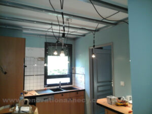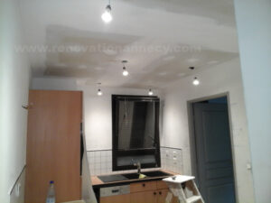 Le faux plafond permet de cacher les irrégularités du plafond d’origine, telles que les fissures, câbles ou tuyaux visibles. Il offre ainsi un rendu esthétique épuré et moderne, en particulier dans les pièces aux plafonds hauts ou irréguliers.