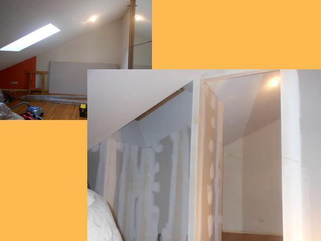 Réagencement chambre Annecy / Menuiserie, Agencement Annecy / Par gilles2 Secteur Cruseilles, non loin d’annecy, dans appartement, installation cloisons séparatrices dans chambre en vue création espace dressing. Petit grenier adjacent, fabrication et pose porte d’accès matériau bois dérivé. [Show as slideshow]