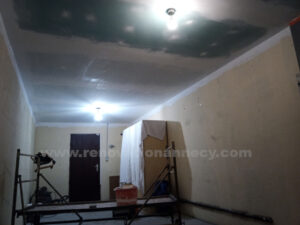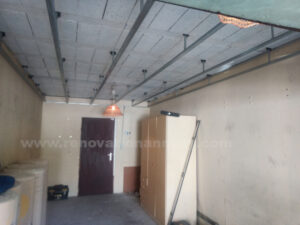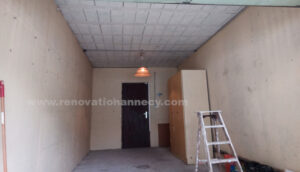 Secteur Annecy-Seynod, isolation plafond garage jusqu’aux finitions peinture. Pose isolant laine de verre ép.160mm avec R=4,6 m2.K/W quand la réglementation thermique dans l’existant recommande R minimale de 3 m2.K/W, rendu possible par la belle hauteur de plafond existante. « Qui peut le mieux peut le plus »
